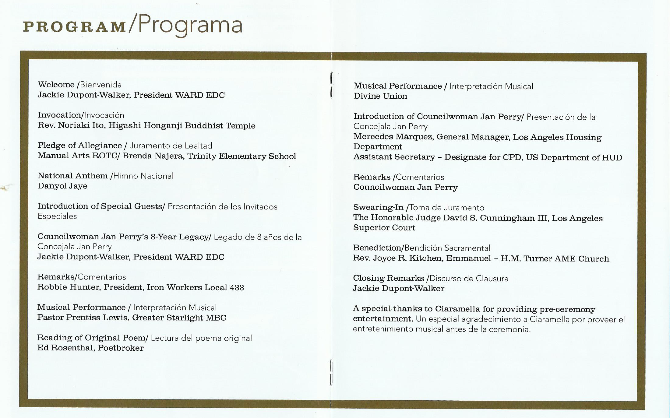 There are also a few programs from events where I read my poetry, like at the swearing in of Councilwoman Jan Perry, open mic nights, the event Ad/Verse Reactions with Jack Skelly, and the Urban Marketplace.